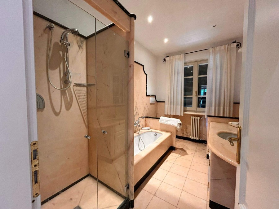 La villa è circondata da un grande giardino privato, una rarità per la zona centrale, che offre privacy e ampi spazi verdi. All'interno, l'abitazione si apre su una zona giorno accogliente e raffinata, composta da un luminoso soggiorno, una sala da pranzo separata e una cucina abitabile.