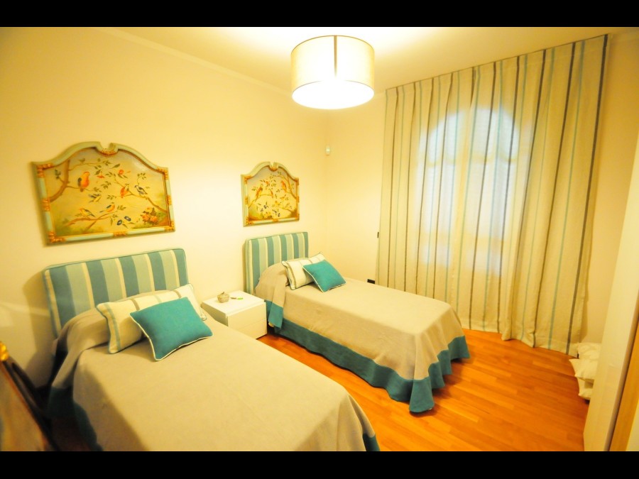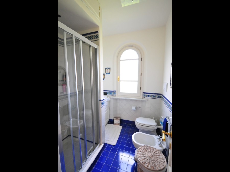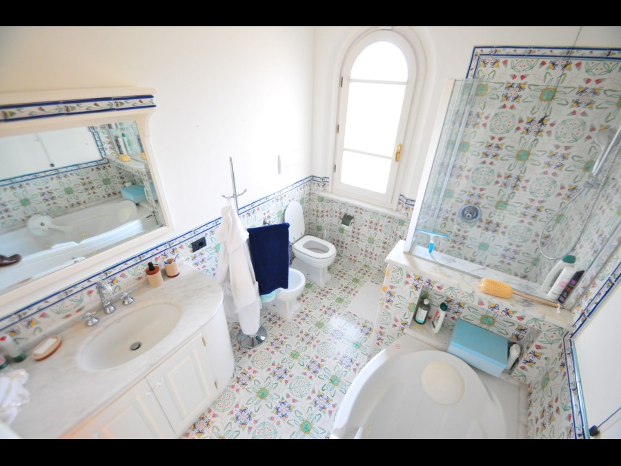 Il piano superiore ospita la zona notte, composta da quattro camere matrimoniali, due delle quali dispongono di bagno privato, mentre le restanti sono servite da un ulteriore bagno. Tutte le camere godono di affacci sul giardino, garantendo un’atmosfera di assoluta tranquillità e massima privacy.