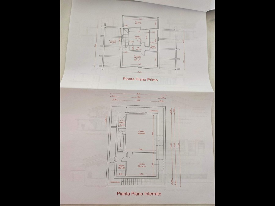 Piano primo: due camere da letto, di cui una con terrazza di circa 17 mq, e bagno.